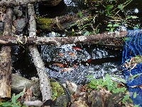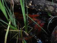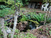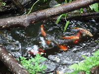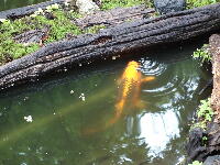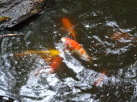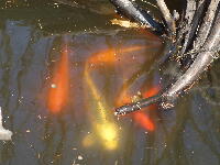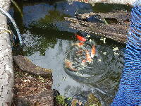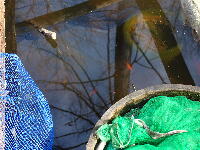 ポンプを動かしやっと通常に戻りました水温は12度前後。少し濁ってはいるものの軽い 水になってきました、鯉も少しづつ動きが出てきたので、時折餌も投げ入れ体を慣らさせ ました。