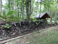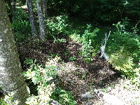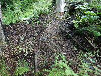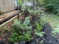 この斜面石の下地には防草シートを敷き込んであるのである程度の笹の反乱は防げると思いますので部分的に穴を開けたりして今はそれまで植えてあったオシダ、自然に生えている山椒、紅葉が顔を出しています。これからギボウシ、シダ類を混ぜながら日陰の庭を作っていこうと思います。150910 |