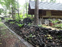 北西に位置する道路側の斜面これまで隈笹が生い茂り毎年刈り取るのも大変だし放置された雰囲気が嫌だったのですがやっと浅間石を積み上げることが出来ましたこれで整然とそして作庭者の意志を表現した場所になりました。