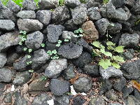 | 170605 長い石垣には場所場所で植物が少しづつ根付いてきました、雰囲気がいい感じです。 |