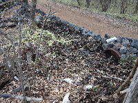 石垣を積み上げたので今までの法面に腐葉土を敷き込み地盤を上げた、小さなポット苗は腐葉土の中に植える