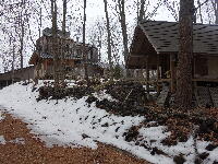 体力から2台分を目途に、そして囲炉裏小屋へのアプローチの斜路の側面も同じ溶岩で表現するそのことで一面で