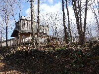 なく二面になって奥行きが出る、この線が苔にはの背景になって更に木塀を建て小屋の下の収納したものを見えなく