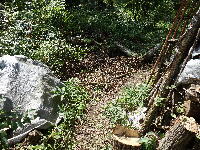 | 180915 昨年の落ち葉がほぼ1年(11月中旬の落ち葉)で土として各所に供給。今年の落ち葉の収納場所として開けておく必要もあるので、このサイクルで利用できる事分かりました。石垣際や斜面、畑地に利用する。下方には水が届かず腐葉土化していないこともある事判明。なかなか落ち葉の撹拌は出来ないので工夫が必要だ。 |