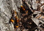思わぬ侵入者でオオスズメバチが近くの切り株で樹液を5匹ぐらいで吸っていた、時折威嚇の為か羽音が
