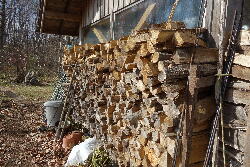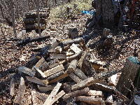 ソーで伐採し当初のような明るい山林に戻しました。伐採木をこれから整理し薪にする仕事を