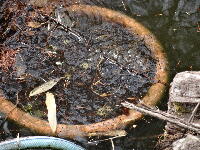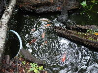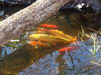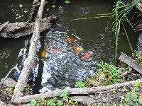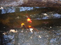 ポンプを動かしやっと通常に戻りました水温は12度前後。少し濁ってはいるものの軽い 水になってきました、鯉も少しづつ動きが出てきたので、時折餌も投げ入れ体を慣らさせ ました。