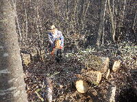 (山房には雑木があって伐採した丸太の処理をしなければならないがそれも楽しみの一つ、何時まで使える量があるかは分からないが当分は買うことなく玉切り、薪割りを楽しむことが出来るでしょう。)