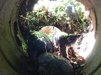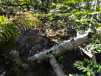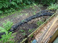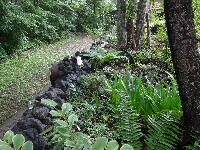この斜面石の下地には防草シートを敷き込んであるのである程度の笹の反乱は防げると思いますので部分的に穴を開けたりして今はそれまで植えてあったオシダ、自然に生えている山椒、紅葉が顔を出しています。これからギボウシ、シダ類を混ぜながら日陰の庭を作っていこうと思います。150910 |