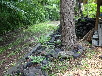 道路側石垣完成縁を積み上げて秋に腐葉土を敷き