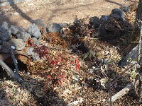 腐葉土がまだ(昨年11月末の頃のもので土化してない)、腐葉土を敷き込むときそれまであったハゼノキ落葉してし