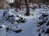 北西に位置する道路側の斜面これまで隈笹が生い茂り毎年刈り取るのも大変だし放置された雰囲気が嫌だったのですがやっと浅間石を積み上げることが出来ましたこれで整然とそして作庭者の意志を表現した場所になりました。