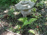 灯籠、際には河内桜(移動)すずらんの木、柿もあることでシダやヤブランも移植してきました。高さの為に太郎冠者
