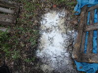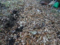 | 170104 生ごみ、ストーブの灰など投入、此処はさすがに凍ってはいない。発酵が進んでいるのでしょう?昨年やり始めての暮れには発酵の様子あまり感じなかったけど、今年は違う、何が違うのか?よくわからないが? |